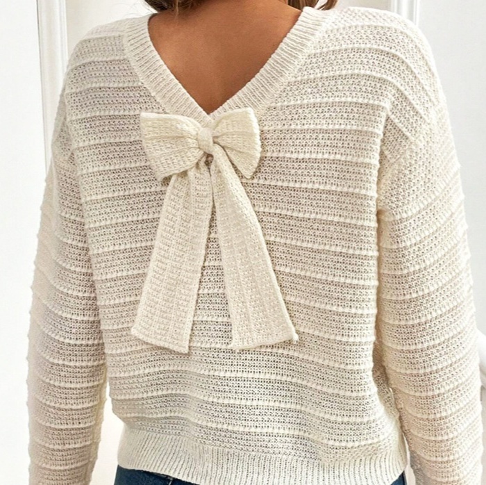 Round Neck Back Bow Design All-match Sweater